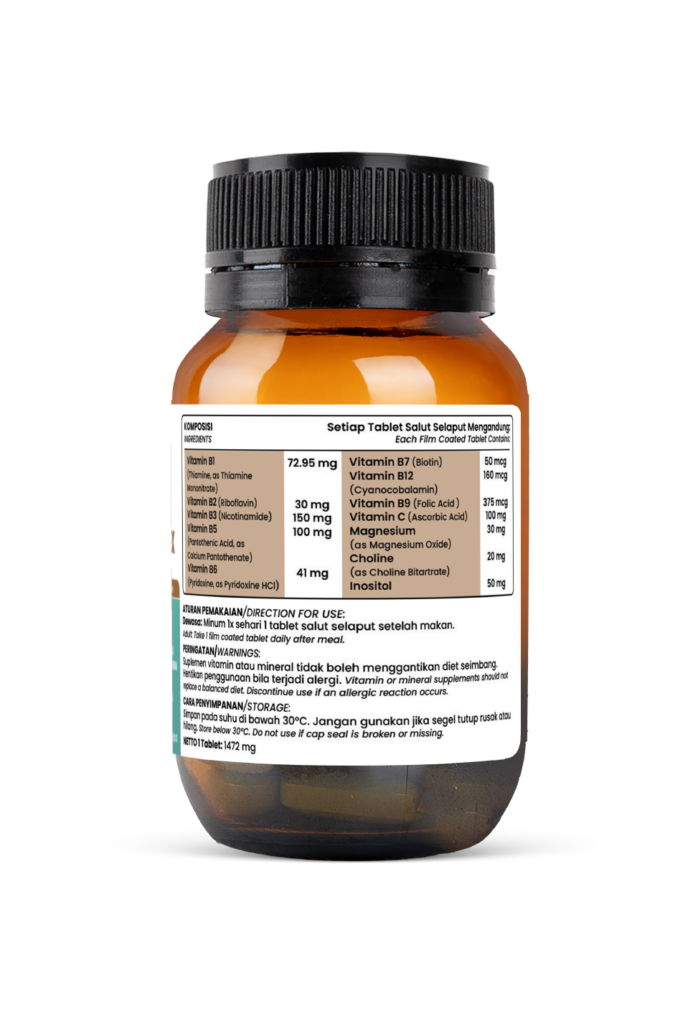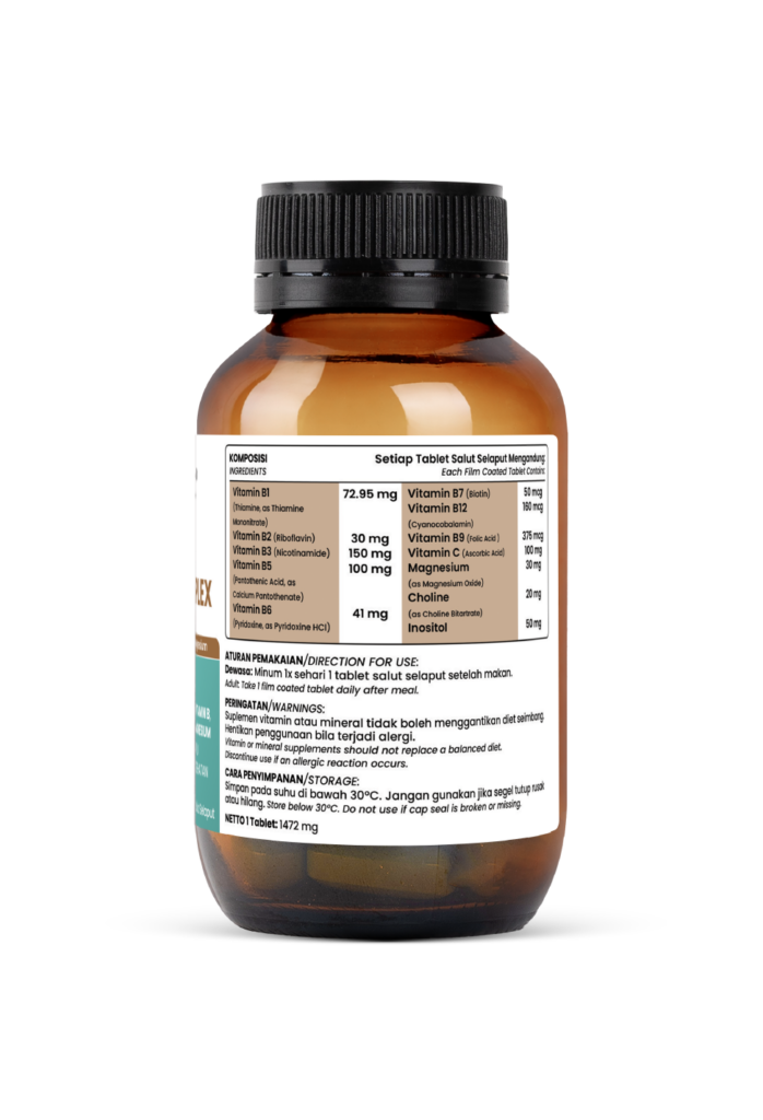 Suplemen ini dirancang untuk mendukung energi harian Anda dengan kandungan vitamin B kompleks. Selain membantu tubuh mengubah makanan menjadi energi, produk ini juga meredakan stres, menjaga kesehatan saraf, dan mendukung tidur yang lebih berkualitas.